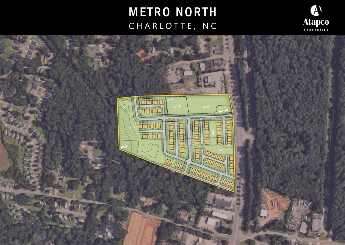Metro North is a planned, 16.73-acre infill community in Charlotte, NC. The community will offer 196 three-bedroom townhouses, walking trails and scenic walkways.